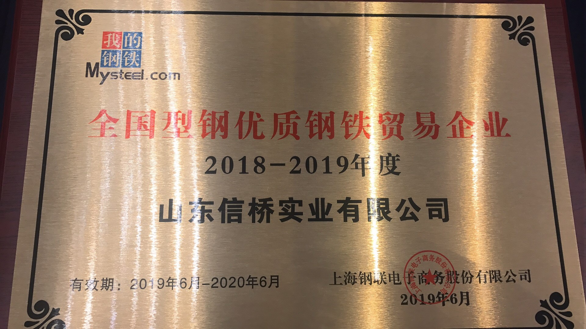 2018-2019年度全國型鋼優(yōu)質鋼鐵貿(mào)易企業(yè)