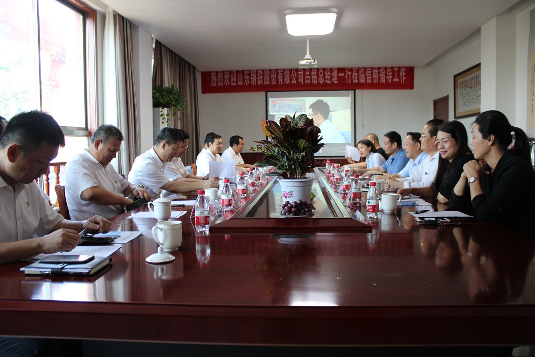 2022年7月7日,山東鋼鐵集團(tuán)總經(jīng)理、黨委副書記呂銘,山鋼股份營(yíng)銷總公司黨委書記、總經(jīng)理郭偉達(dá)一行到泰安信橋考察調(diào)研,集團(tuán)董事長(zhǎng)徐立波、總經(jīng)理徐宏、泰安市鋼貿(mào)商會(huì)王炳坤以及其他相關(guān)公司負(fù)責(zé)人等熱情陪同。